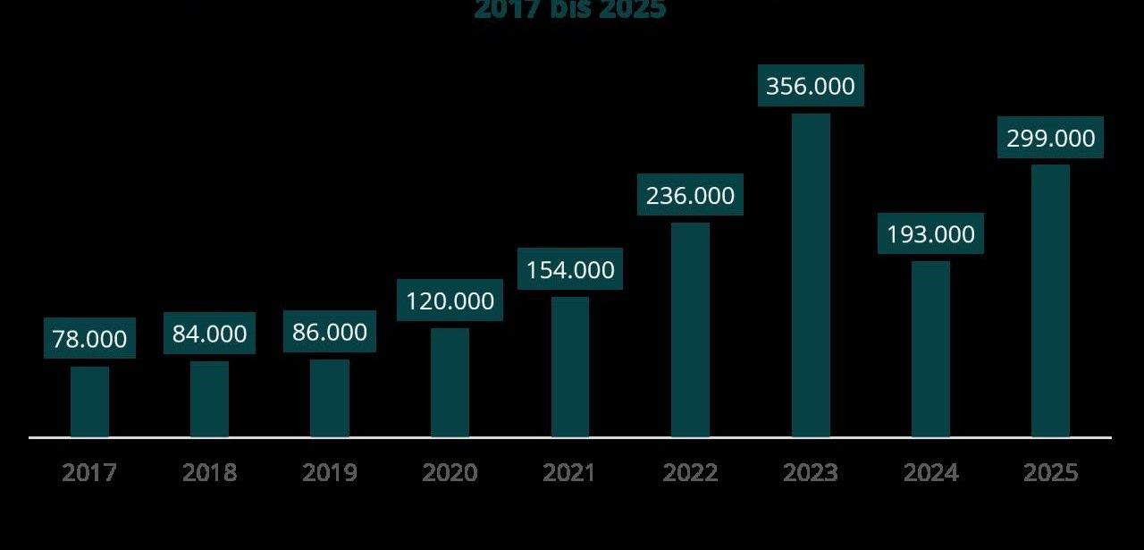 Das Segment Photovoltaik mit Leistungen zwischen fünf und dreißig Kilowatt Peak musste im Jahr 2025 einen erneuten Rückgang von etwa dreißig Prozent hinnehmen. Gleichzeitig zog die Nachfrage nach Batteriespeichern leicht an und wuchs um rund zwei Prozent. Im Bereich der Balkonkraftwerke kam es erstmals zu einem Minus: Die Anzahl neu installierter Anlagen sank um ungefähr drei Prozent auf etwa 430.000 Stück, was die schwierige Marktbedingung für kleine PV-Lösungen widerspiegelt.